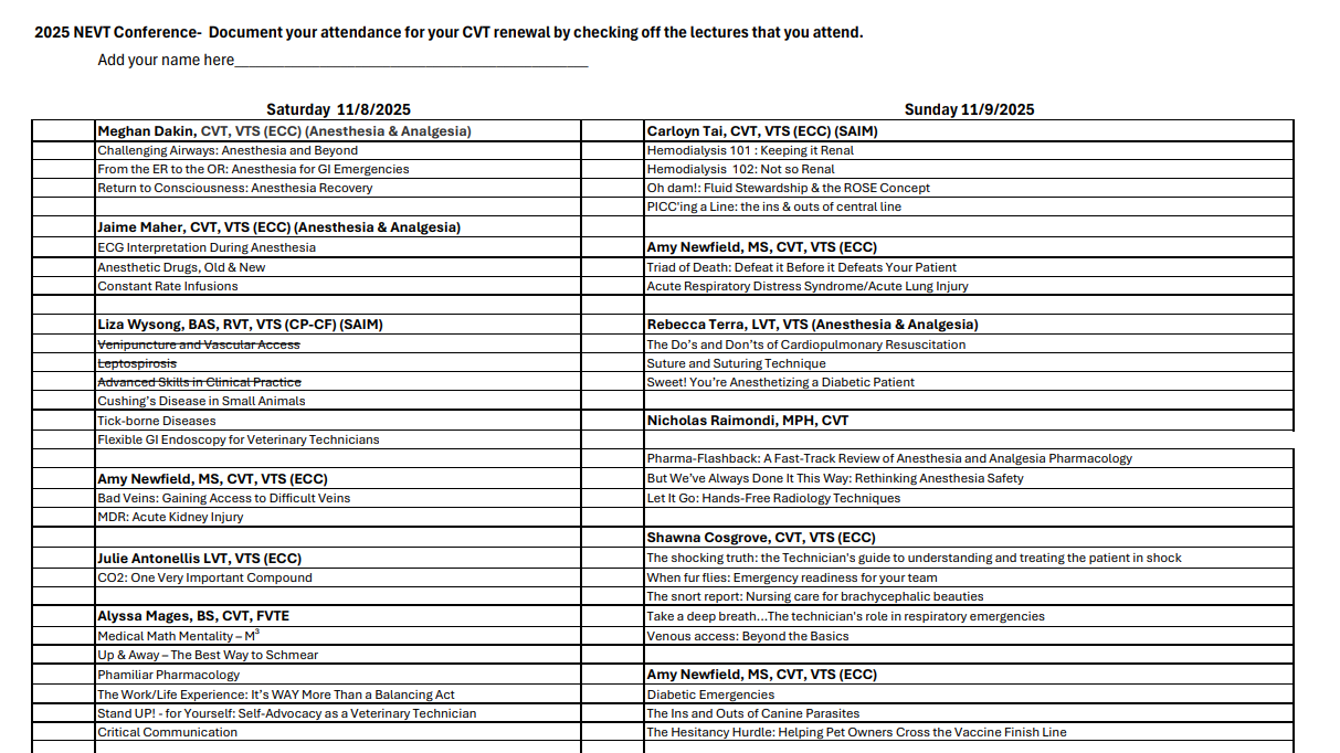 • FOR LARGE CONFERENCES SUCH AS VMX, AVMA, AVTE, RIVTA SYMPOSIUM, RIVMA SCIENTIFIC SEMINAR, ETC: A Detailed CE list MUST be provided, and you MUST FILL OUT THE FORM WITH HOURS ATTENEDED. See example of a detailed conference certificate below.